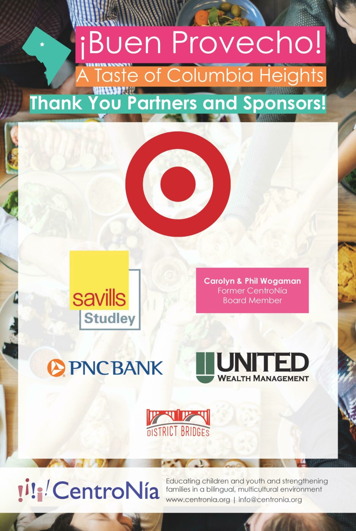We are grateful to everyone that joined us in celebrating the Columbia Heights and CentroNía. Thank you again the sponsors, benefactors, partners, restaurants, volunteers, and patrons who made this event such a success!