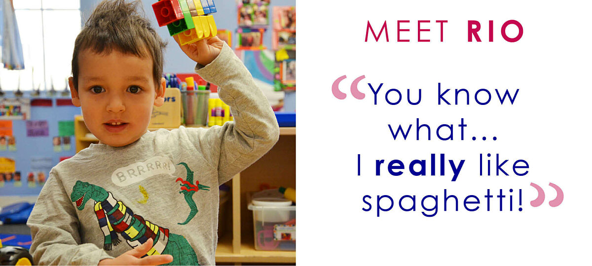 Charismatic three-year old Rio is an early learner in Pre-K at CentroNía. When he is not busy making new friends in class, Rio likes to run and play with his teacher, Ms. Nicole. He likes to stay active and loves doing yoga in the Dance Studio with Ms. Karen, the physical education teacher from CentroNía partner KidFit. Before naptime, Rio looks forward to eating a healthy lunch-always hoping it'll be his favorite, spaghetti! After getting some rest, Mr. Anthony starts a dance party to wake up the class and Rio LOVES to show off his 'cool' dance moves. Rio is also a very proud Spanish-language learner! He enjoys when Ms. Tami reads to the class in Spanish. In fact, when 3rd graders from Georgetown Day School come to volunteer in his class, Rio often shares his newest Spanish words with them!